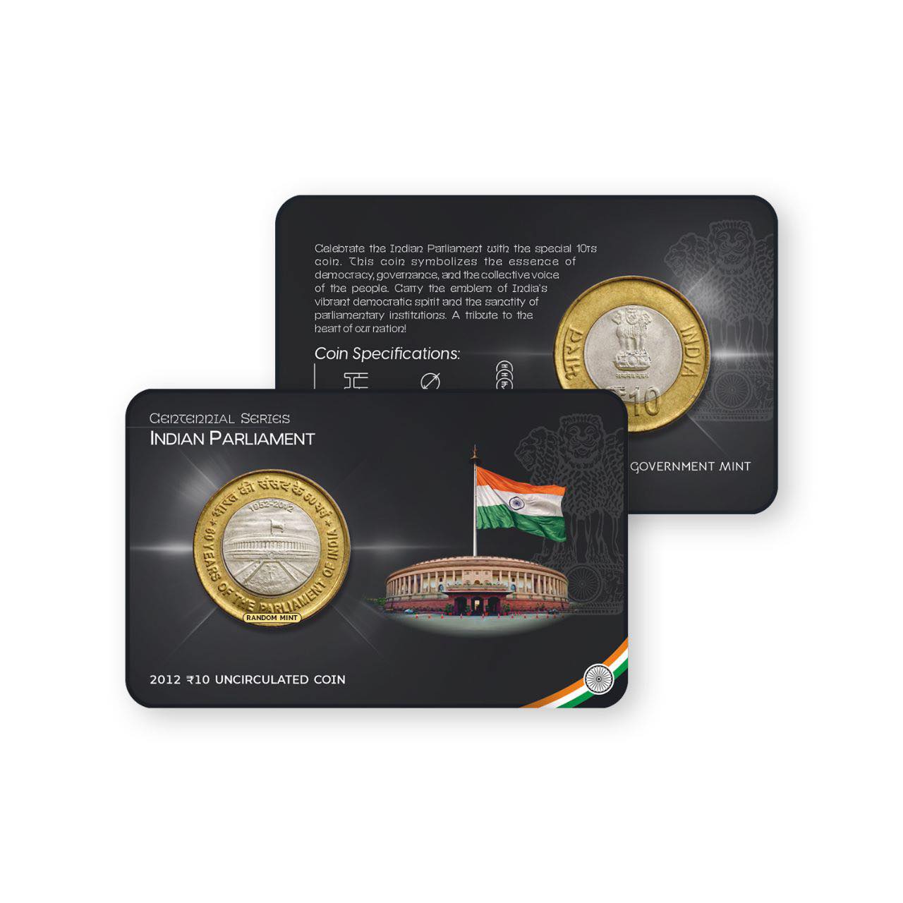 10 Rupees Card Packing Indian Parliament Unc Coin