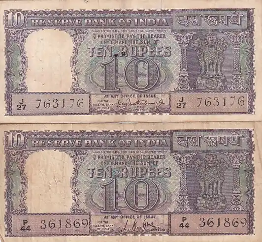 10 Rupees L K Jha & P C Bhattacharya Diamond Issue Two Notes Set
