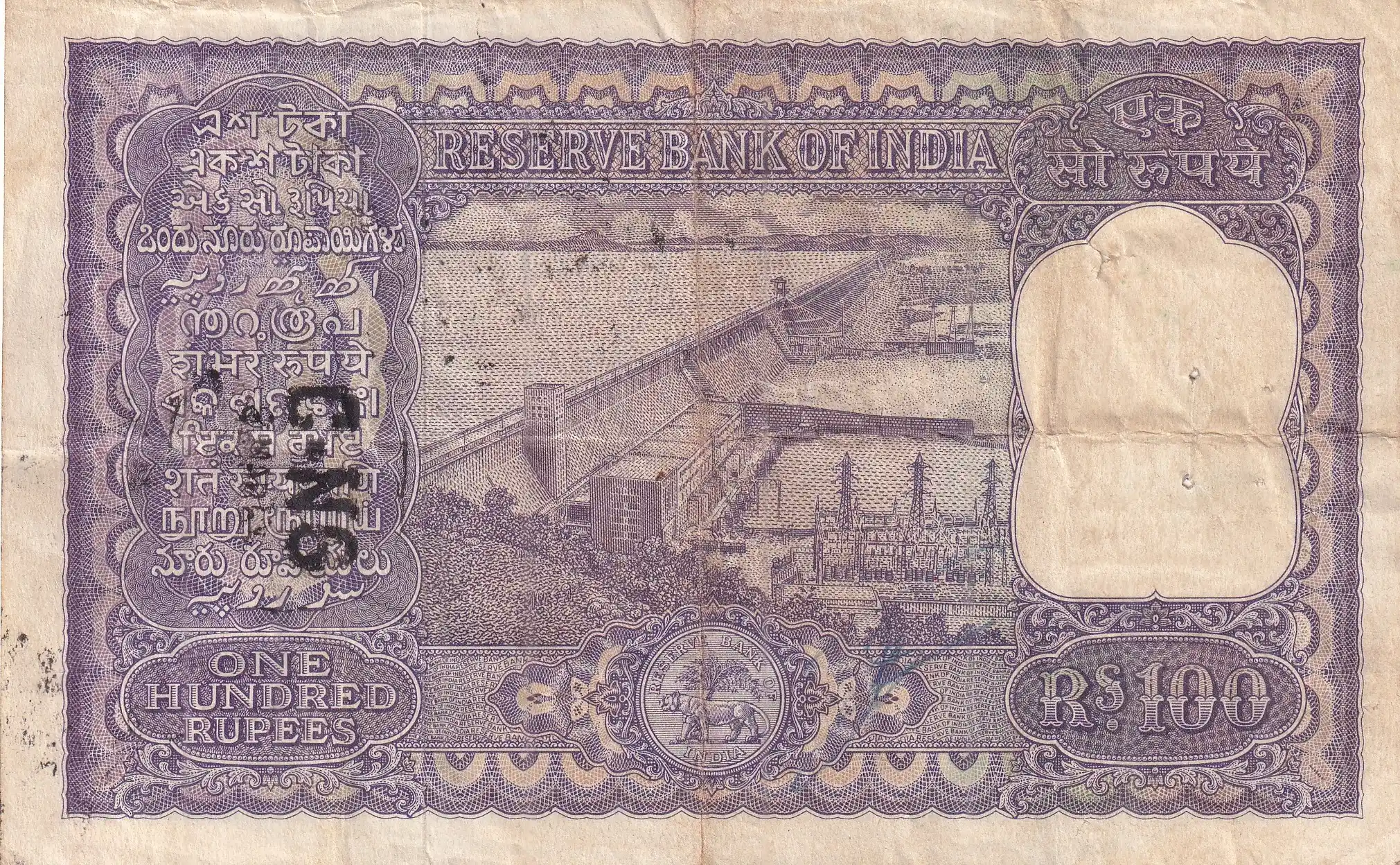 100 Rs Signed of HVR Iyengar G-6 Hirakud Dam Note