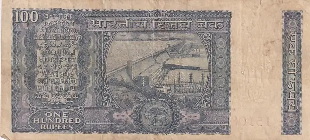 Flipping to the reverse, a picturesque image of a dam takes centre stage, providing a glimpse into India’s infrastructure. Just below the dam, the Reserve Bank seal adds a touch of authenticity to this historical note.