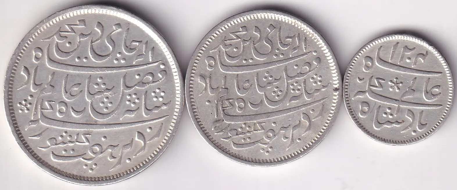Bengal Presidency 1 Rupee 1/2 Rupee 1/4 Rupee Shah Alam II Three Silver Coins set