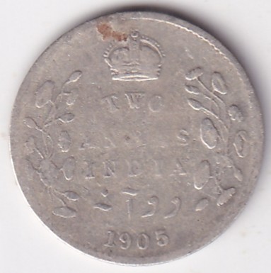 - A stunning example of the 1905 silver Two Annas coin, celebrated for its detailed design and exceptional condition.