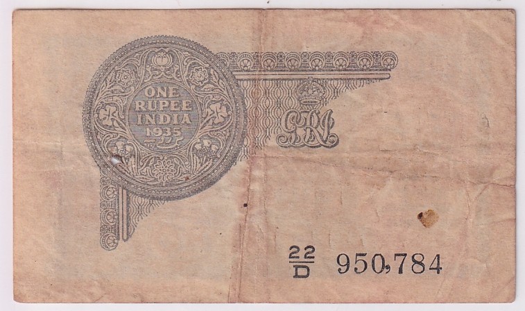 British India 1935 One Rupee Note
