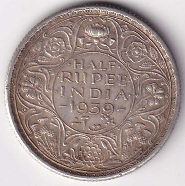 Historical Note : 1939 was the last year the half rupee was issued in full .917 silver, making it highly collectible and more valuable compared to later issues, which had reduced silver content.