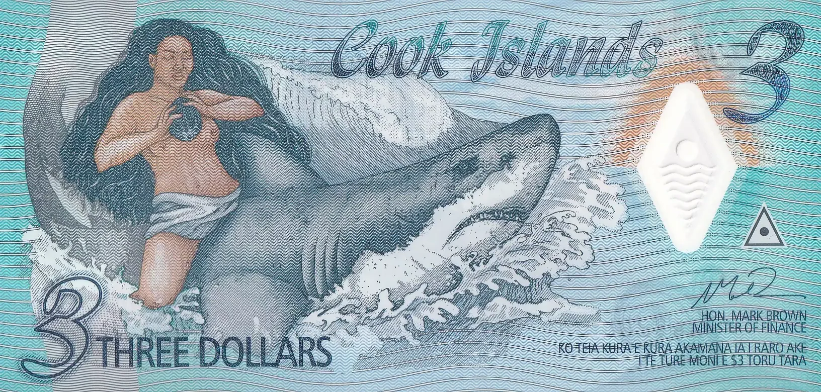 3 Dollars of Cook Islands of 2021 Polymer Unc Note