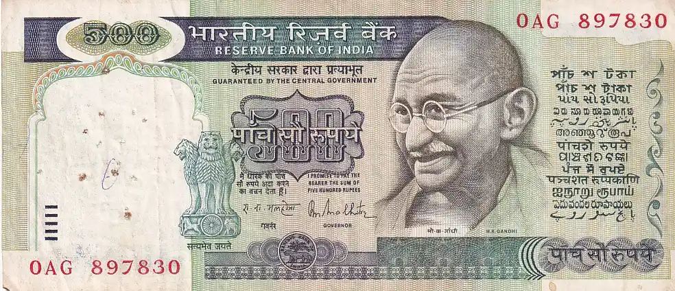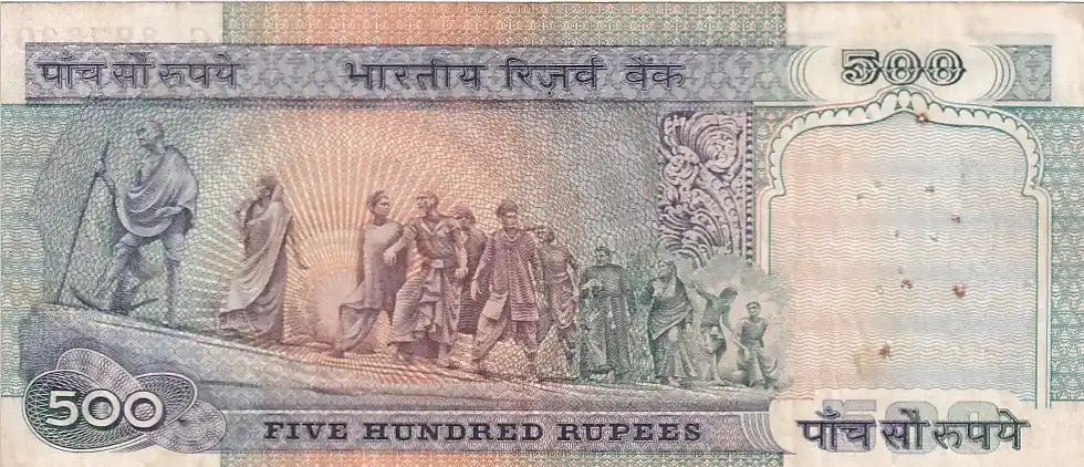 This 500 Rupees H-1 banknote is the first issue in the Mahatma Gandhi series, bearing the signature of Reserve Bank Governor R.N. Malhotra. The obverse features Mahatma Gandhi’s portrait, the denomination in multiple scripts, and important security elements. The reverse highlights the iconic Dandi March scene, symbolizing India’s journey to independence. Highly sought after, this note is distinguished by its ‘H-1’ identifier and is a prized addition for collectors of rare Indian currency.
