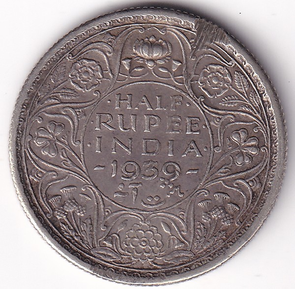 Value of Half Rupee 1939 British India of King George VI Mature Head Silver Coin