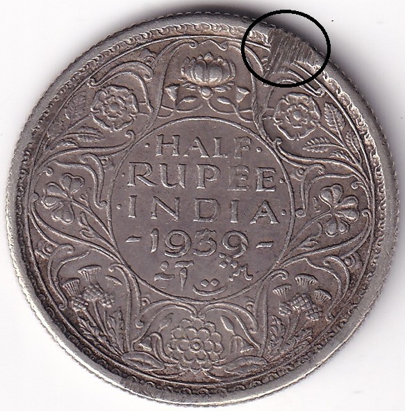 Physical Appearance and Details of Half Rupee 1939 British India of King George VI Mature Head Silver Coin
