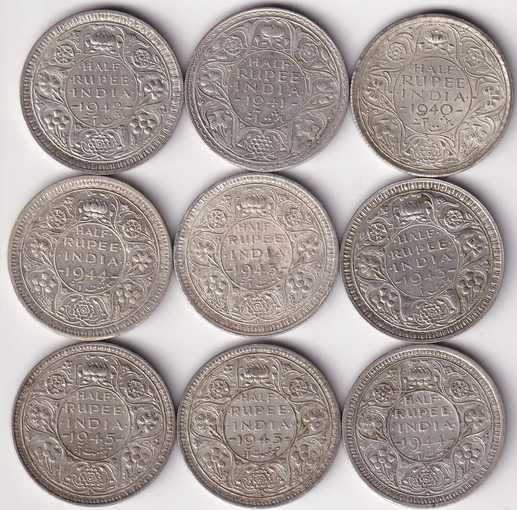 Half Rupee 1940 to 1945 Complete Set Mint Wise Silver Coins