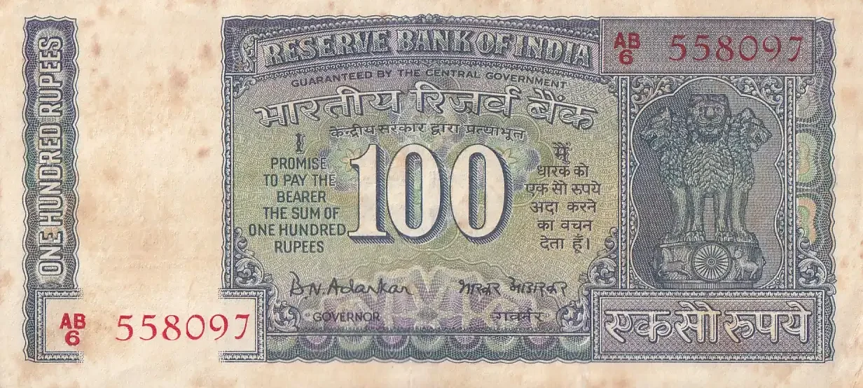 India 100 Rs B N Adarkar Sign Mahatma Gandhi Sitting Gita Book Note