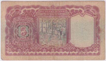 The serial number of the note is seen on both top left and bottom right, printed in green ink. The signature of the Reserve Bank Governor, C.D. Deshmukh, appears at the bottom left on the reverse side, helping date the note approximately to the mid-20th century when he served as Governor (1943-1949).