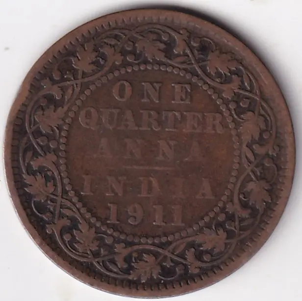 One Quarter Anna 1911 George V British India Cleaned Coin