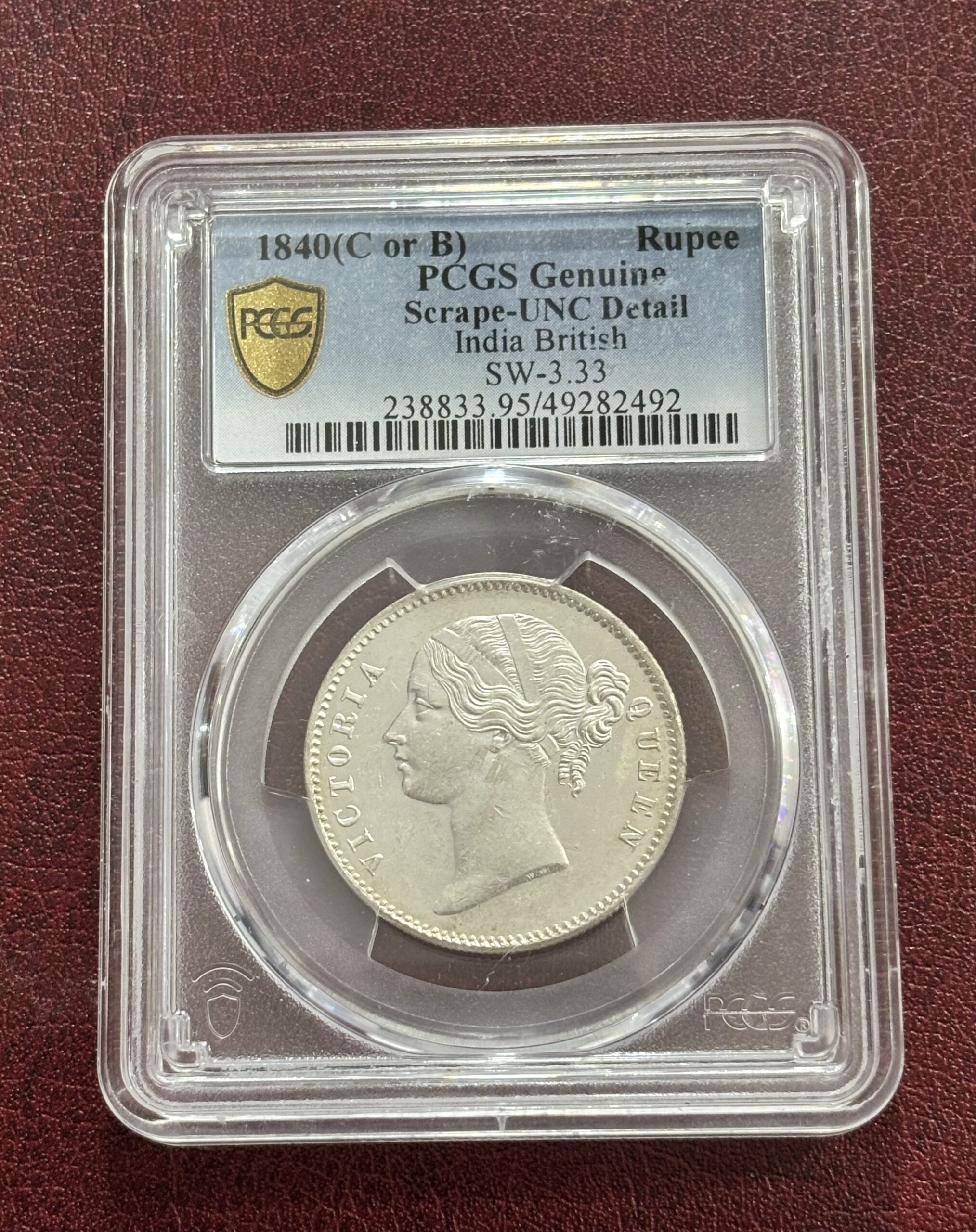 PCGS 1840 One Rupee Environmental Damage Unc Detail Graded Coin