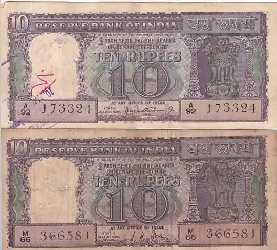 10 Rupees L K Jha & P C Bhattacharya Diamond Issue Two Notes Set