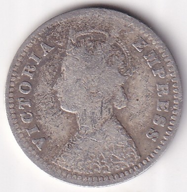 Two Annas of 1892 of Victoria Empress Silver Coin