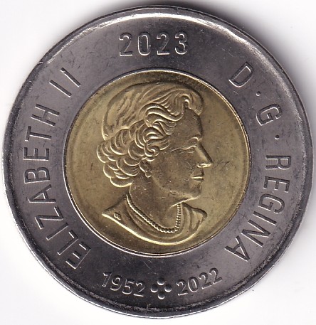 This Canadian $2 coin, released in 2023, celebrates the 100th birth anniversary of Jean Paul Riopelle, one of Canada’s most renowned modern artists. The coin is bi-metallic, with a gold-colored inner circle and a silver-colored outer ring, a style known as the “Toonie.” The reverse side features two stylized geese in flight, depicted in bold blue and white colors with dynamic black outlines. This beautiful design is inspired by Riopelle’s famous painting “L’Hommage à Rosa Luxemburg,” which pays tribute to both his love for wildlife and his contribution to Canadian and international art. The earthy, abstract background echoes Riopelle’s unique artistic style, full of energy and movement. Around the image are the inscriptions “2 DOLLARS CANADA” and “RIOPELLE 100,” marking the coin’s value and commemorative purpose. Two small maple leaves appear at the bottom, symbolizing Canada’s national identity. This colorful commemorative coin is sought after by collectors for its tribute to creativity and Canadian culture, and its vibrant look stands out in any collection.