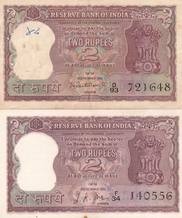 Two Rupees Diamond Issue L K Jha and P C Bhattacharya Two Notes Set