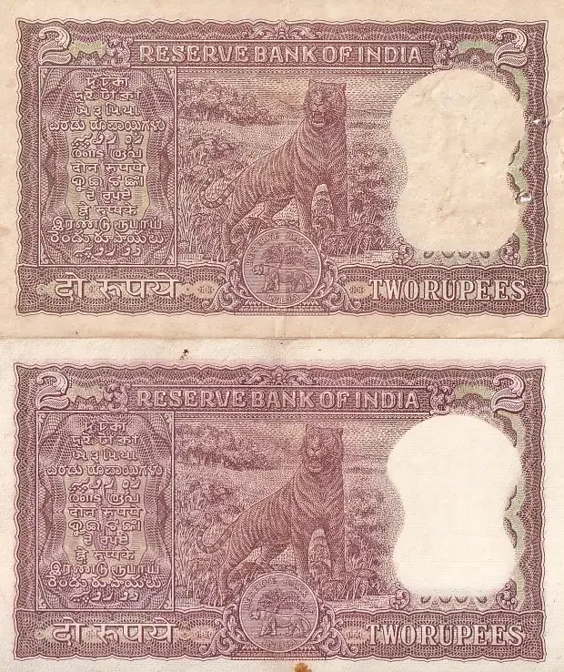 2 Rupees Diamond Issue L K Jha and P C Bhattacharya Two Notes Set